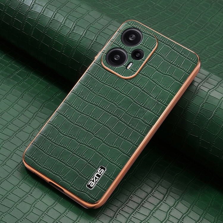 Para Xiaomi Poco F5 Azns Marco Galvanizado Textura de Cocodrilo Funda para Teléfono de Cobertura Total (Verde)