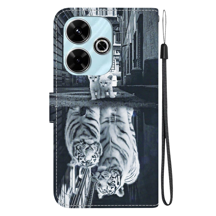 Para Xiaomi Poco M6 4G Funda de Teléfono de Cuero con Dibujo Coloreado con Textura de Cristal (Reflejo de Tigre de Gato)