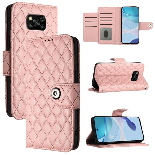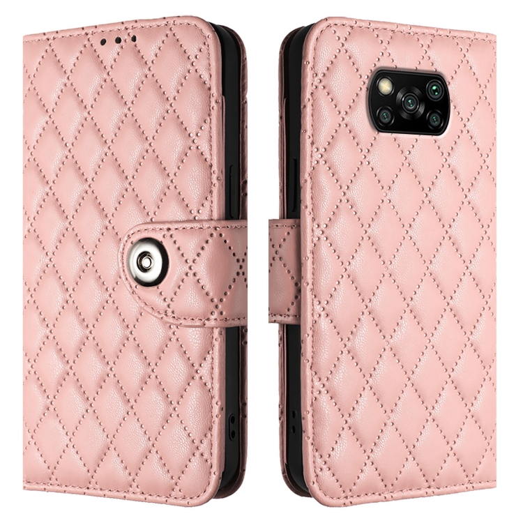 Para Xiaomi Poco X3 / X3 Nfc / X3 Pro Funda de Cuero con Tapa con Textura Rómbica y Cordón (Rosa Coral)