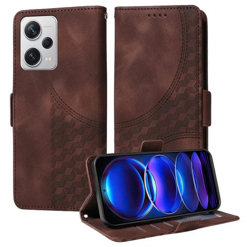 Para Xiaomi Poco X5 Pro Funda de Teléfono de Cuero Estrellado con Rombos En Relieve (Marrón)