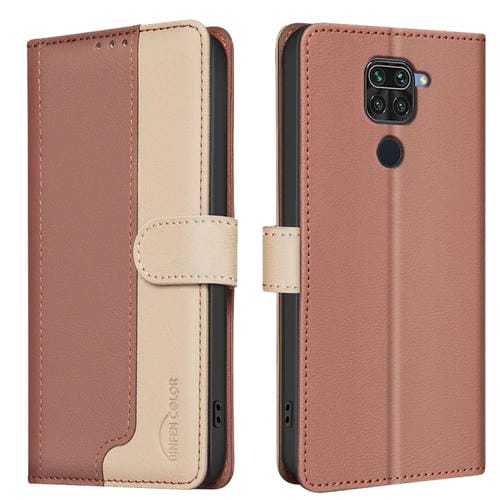 Para Xiaomi Redmi 10X 4G / Note 9 Funda de Teléfono de Cuero Antirrobo Rfid a Juego de Colores (Marrón)