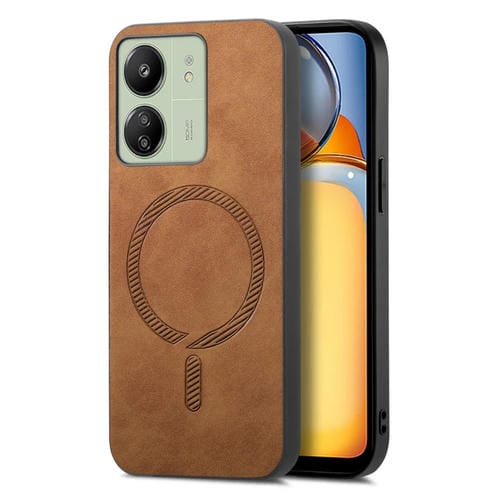 Para Xiaomi Redmi 13C Color Sólido Retro Magsafe Pu Funda para Teléfono con Contraportada (Marrón)