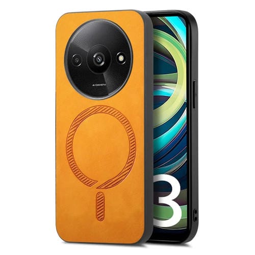 Para Xiaomi Redmi A3 Color Sólido Retro Magsafe Pu Funda para Teléfono con Contraportada (Amarillo)