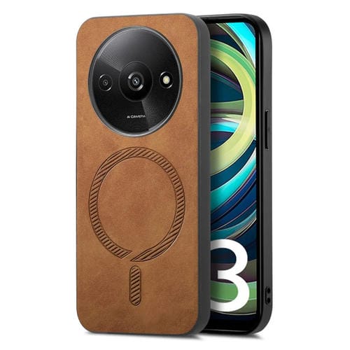 Para Xiaomi Redmi A3 Color Sólido Retro Magsafe Pu Funda para Teléfono con Contraportada (Marrón)