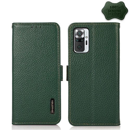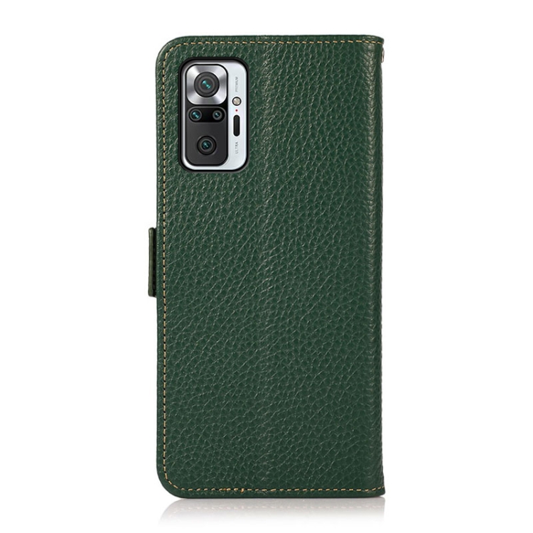 Para Xiaomi Redmi Note 10 Pro Khazneh Side-Magnetic Litchi Cuero Rfid de Cuero Genuino (Verde)