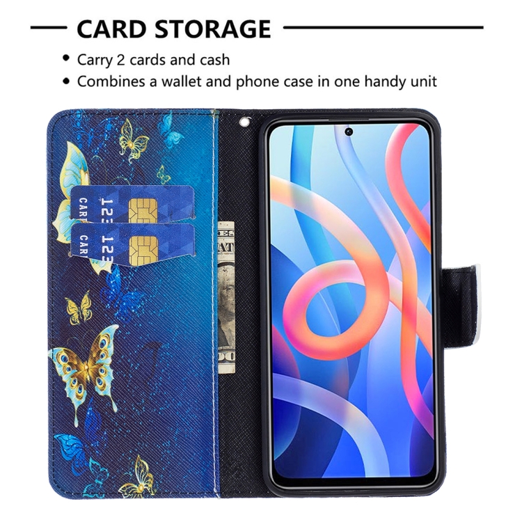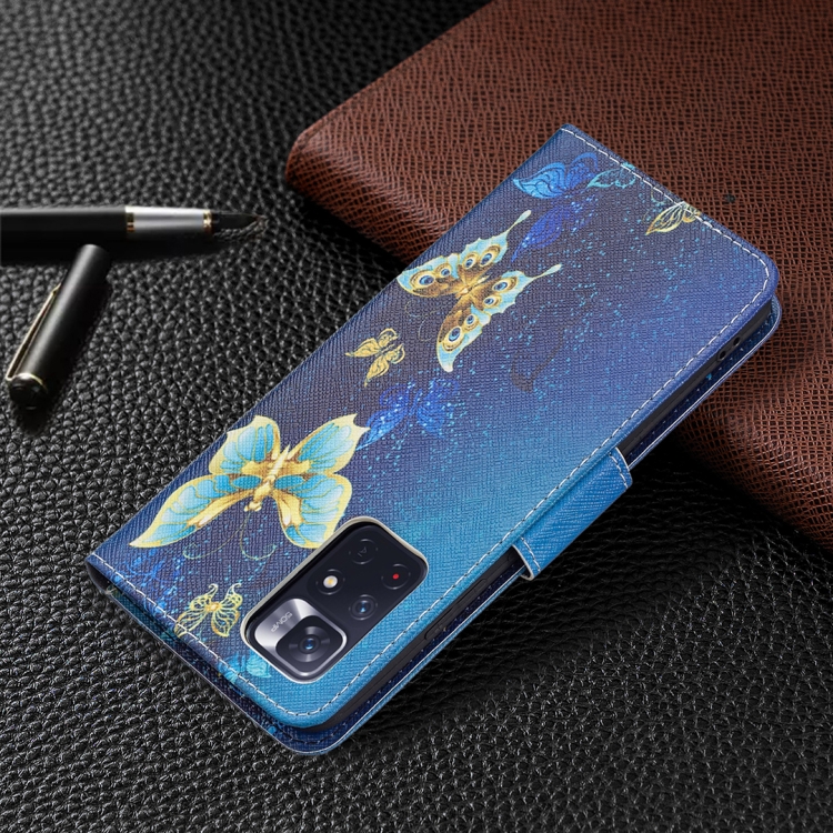 Para Xiaomi Redmi Note 11 Caja de Telefonía de Cuero de Dibujo de Color (Mariposa de Oro)