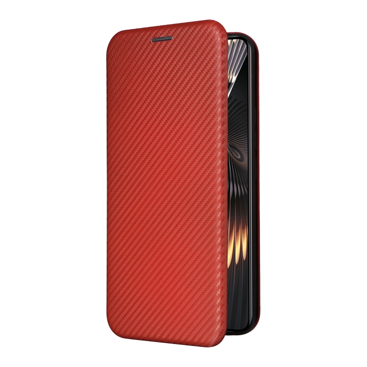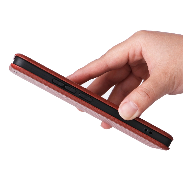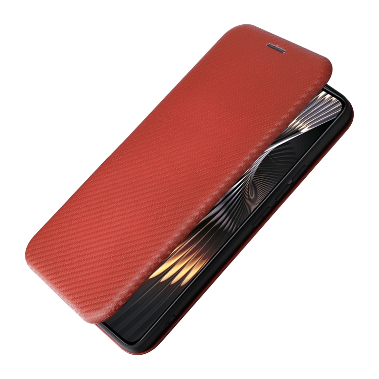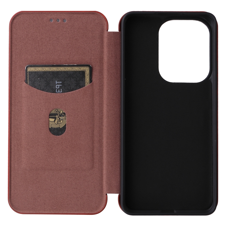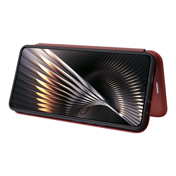 Para Xiaomi Redmi Turbo 3 / Poco F6 Funda de Teléfono de Cuero con Tapa con Textura de Fibra de Carbono (Marrón)