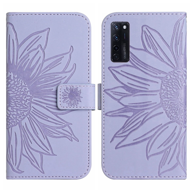 Funda Flip de Cuero ZTE Axon 20 4G/20 5G con Cordón y Diseño Sun Flower (Púrpura)