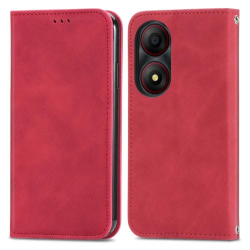 Funda de Cuero para ZTE Blade A34 con Tapa Magnética y Sensación de Piel Retro (Rojo)