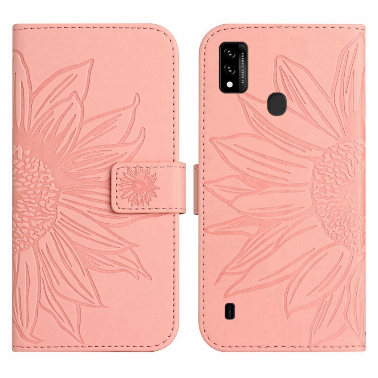 Funda de Cuero Flip para ZTE Blade A51/A7P con Cordón y Diseño Sun Flower (Rosa)
