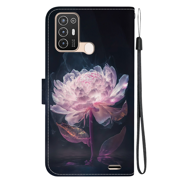 Funda de Cuero para ZTE Blade A52 con Dibujo Coloreado y Textura de Cristal (Peonía Púrpura)