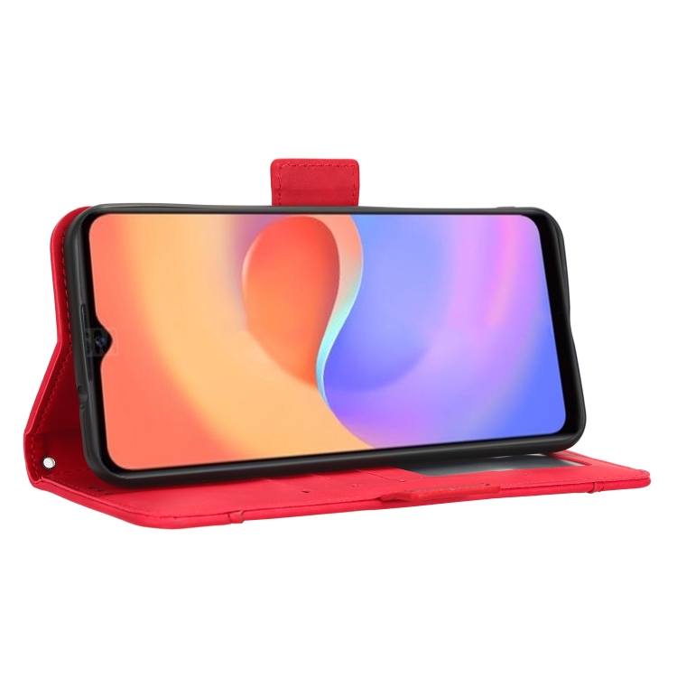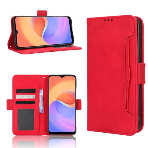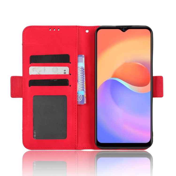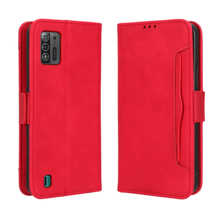 Funda de Cuero para ZTE Blade A52 Lite con Ranuras para Tarjetas y Textura Skin Feel (Rojo)