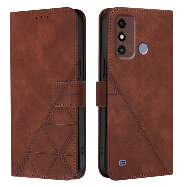 Funda de Cuero para ZTE Blade A53 Crossbody con Tapa en Relieve 3D (Marrón)