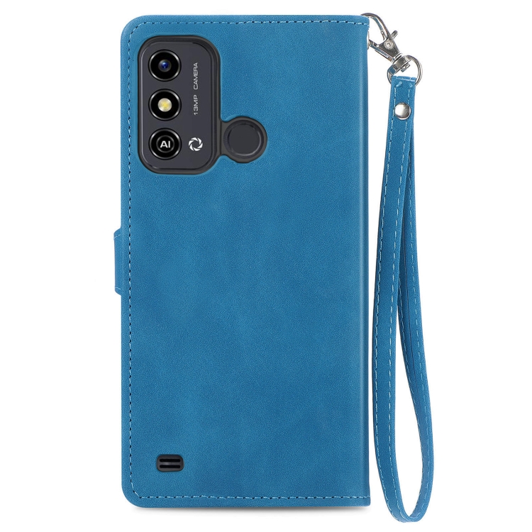 Funda de Cuero para ZTE Blade A53 con Cremallera y Flores en Relieve (Azul)