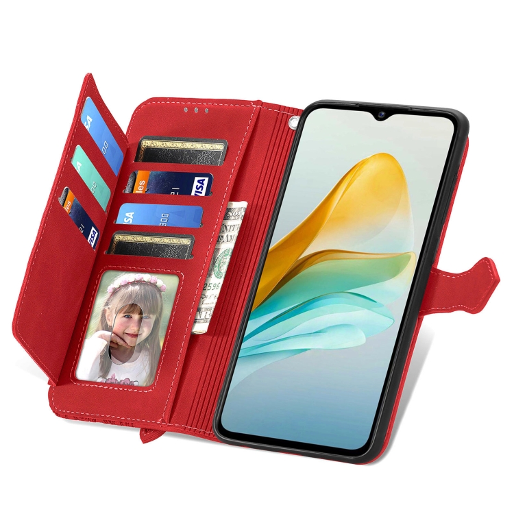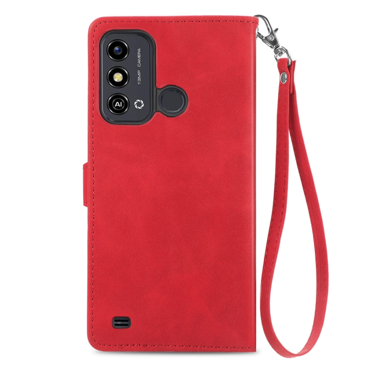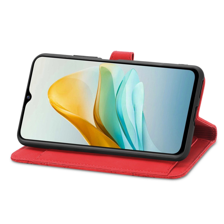 Funda de Cuero para ZTE Blade A53 con Cremallera y Flores en Relieve (Rojo)