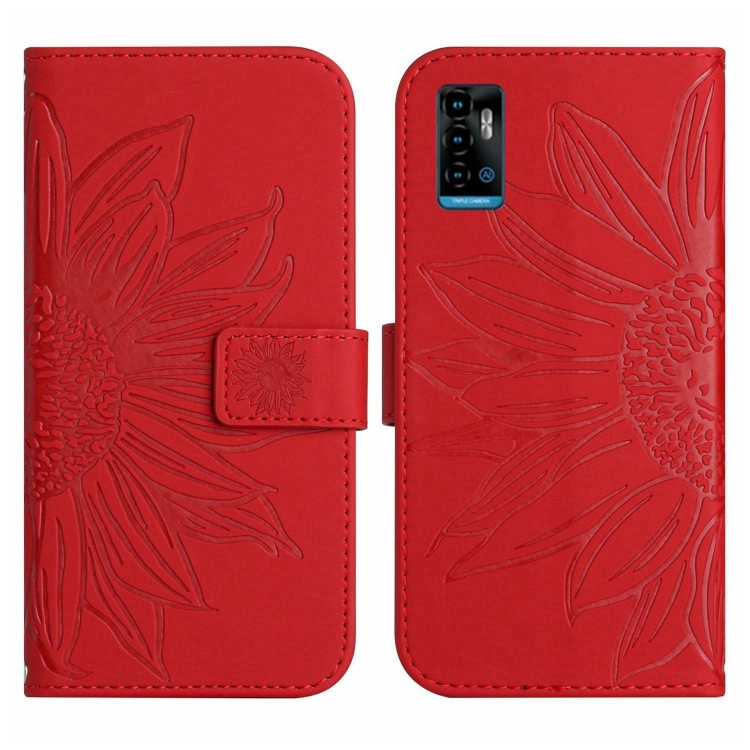 Funda Flip de Cuero para ZTE Blade A71 Skin Feel con Cordón y Diseño Sun Flower (Rojo)