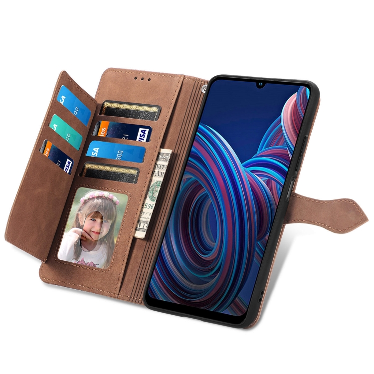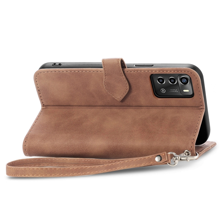 Funda de Cuero para ZTE Blade A72 4G con Protección Antigolpes y Flores en Relieve (Marrón)