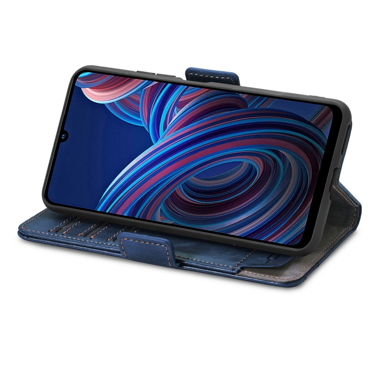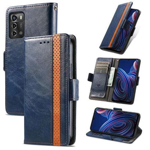 Funda de Cuero Caseneo para ZTE Blade A72 4G Splicing Dual Magnetic Hebilla (Azul)