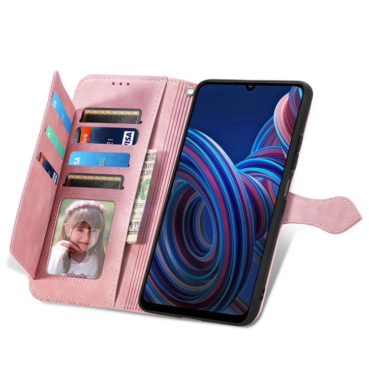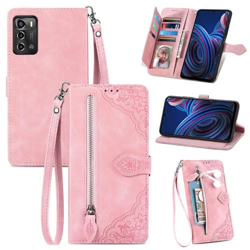 Funda para ZTE Blade A72 4G de Cuero a Prueba de Golpes con Flor en Relieve (Oro Rosa)