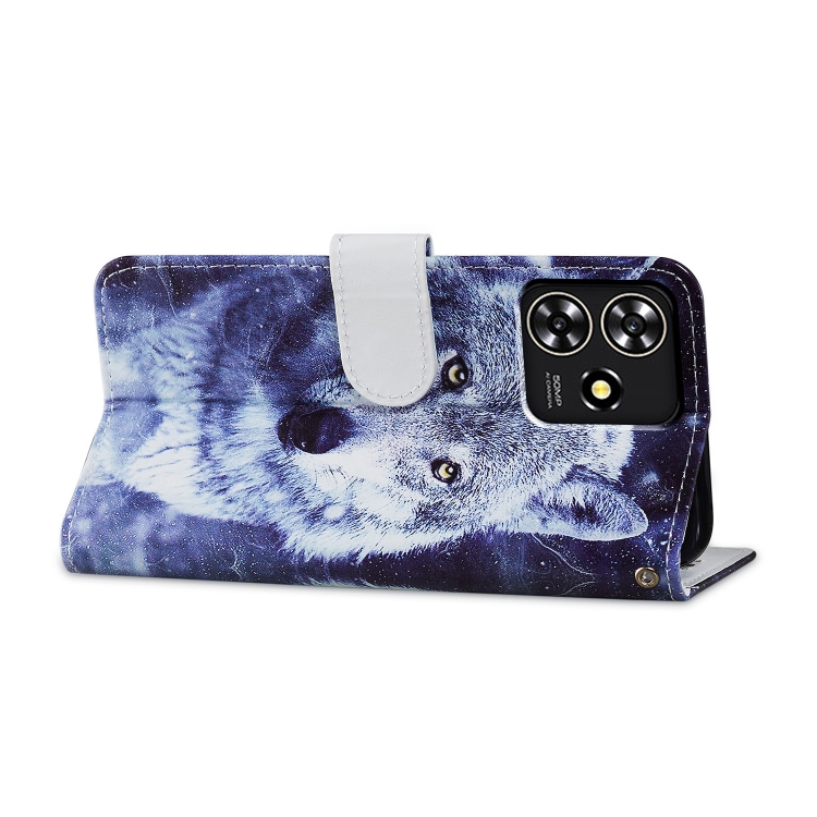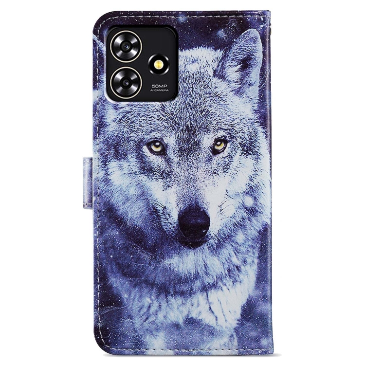 Funda de Cuero para ZTE Blade A73 4G con Tapa Horizontal y Patrón Lobo Blanco