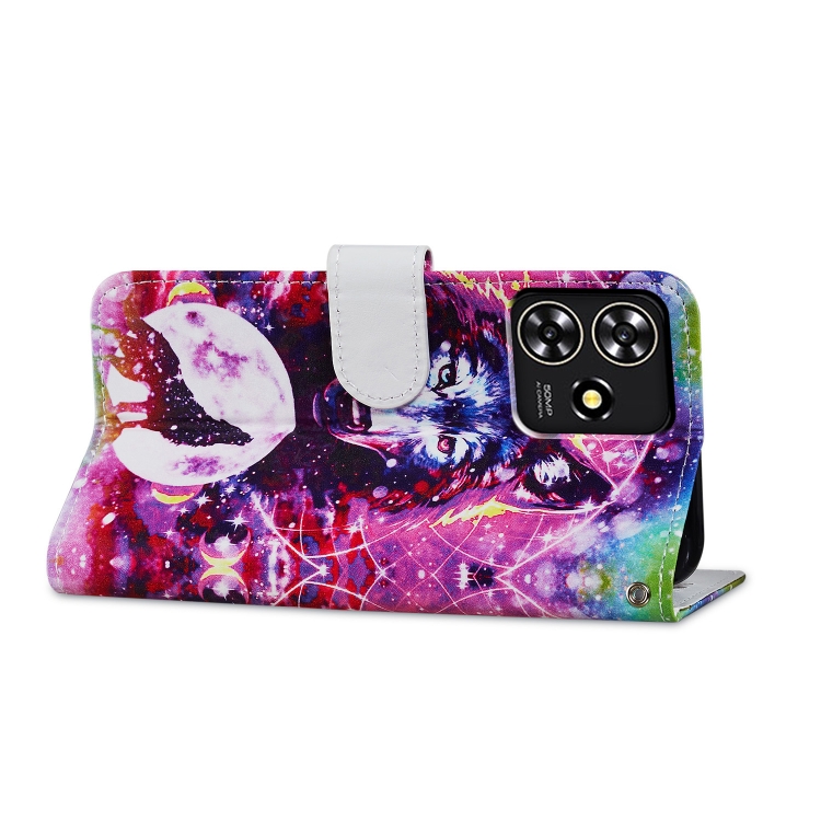 Funda de Cuero para ZTE Blade A73 4G con Tapa Horizontal y Patrón Tótem de Lobo