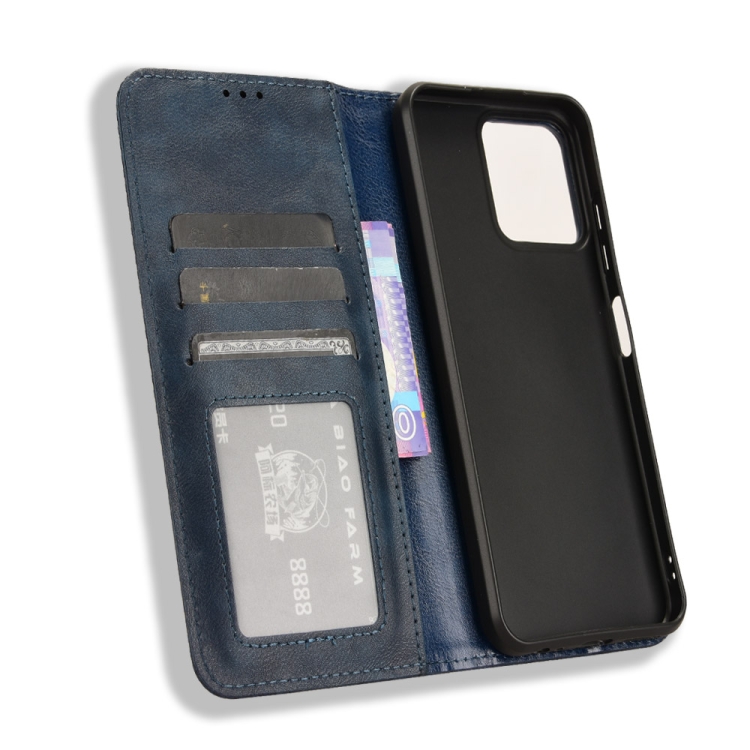 Funda para ZTE Blade A73 4G de Cuero con Textura Retro y Hebilla Magnética (Azul)