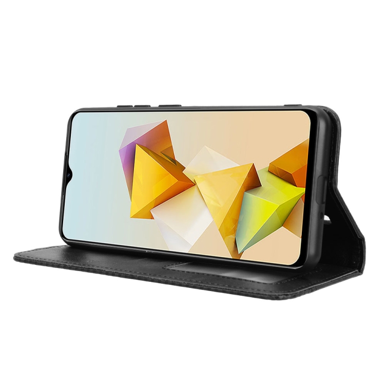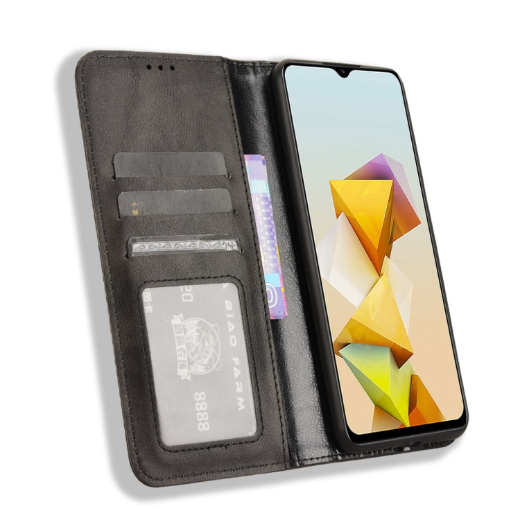 Funda para ZTE Blade A73 5G de Cuero con Textura Retro y Hebilla Magnética (Negro)