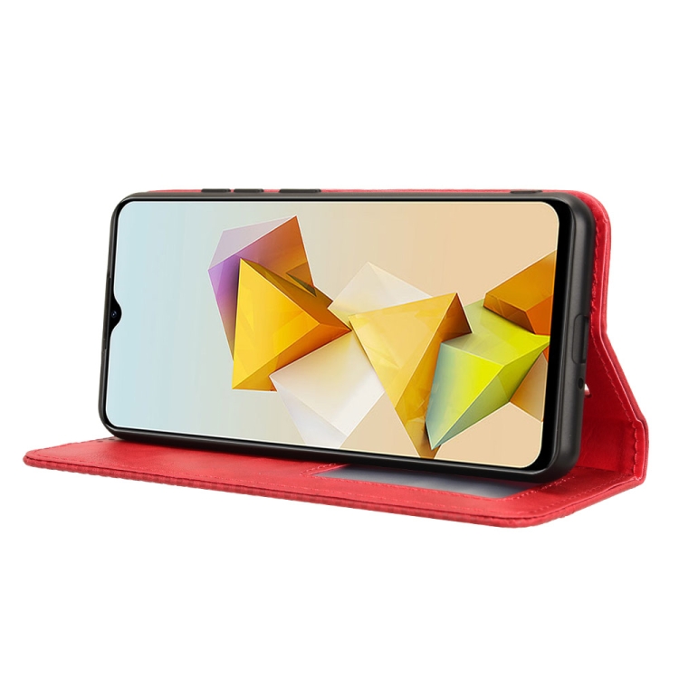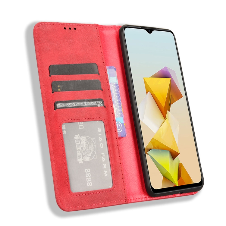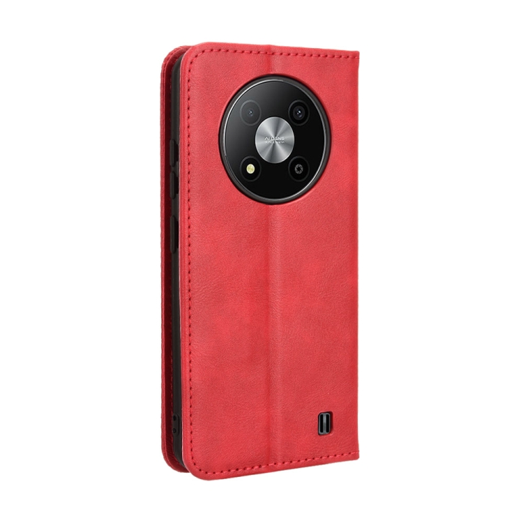 Funda para ZTE Blade A73 5G de Cuero con Textura Retro y Hebilla Magnética (Rojo)