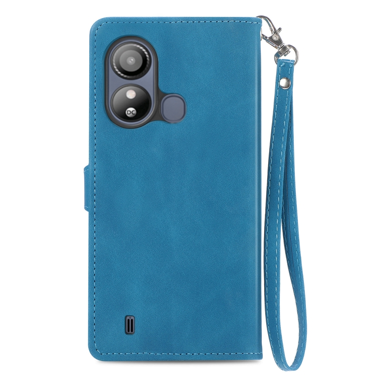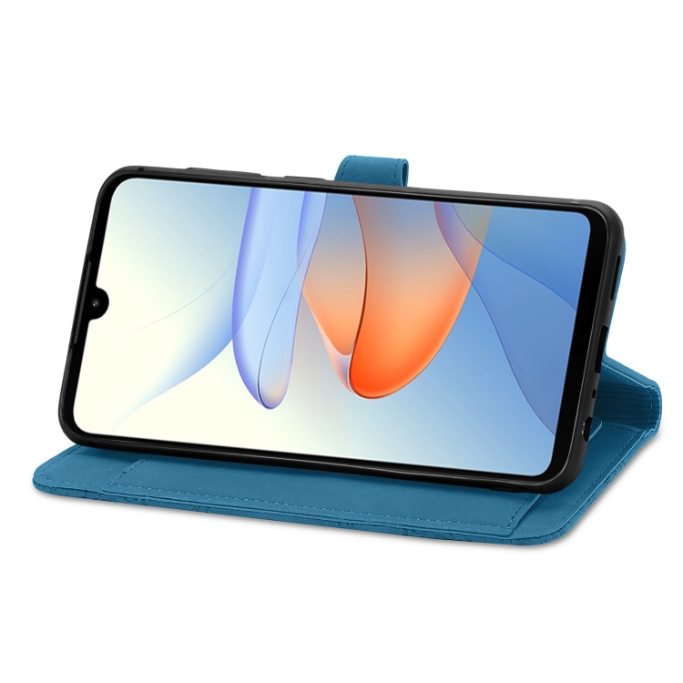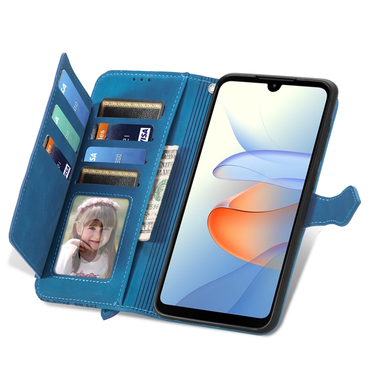 Funda de Cuero para ZTE Blade L220 con Cremallera y Flores en Relieve (Azul)