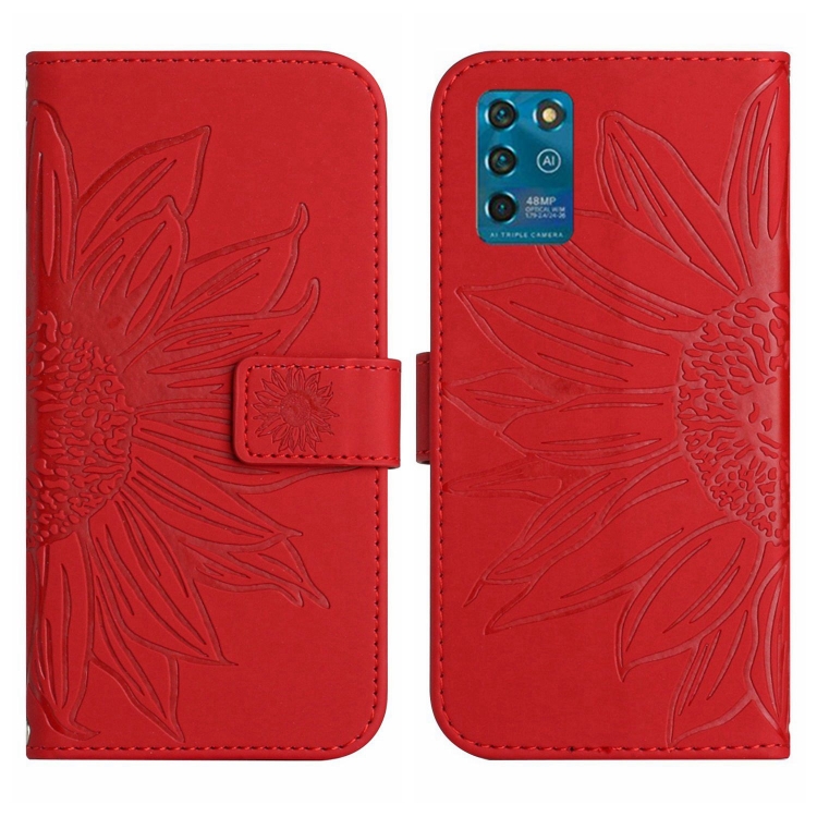 Funda de Cuero Flip para ZTE Blade V30 Vita con Cordón y Diseño Sun Flower (Rojo)