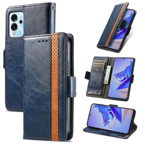 Funda de Cuero Caseneo Splicing Dual Magnetic para ZTE Blade V40 Pro (Azul)