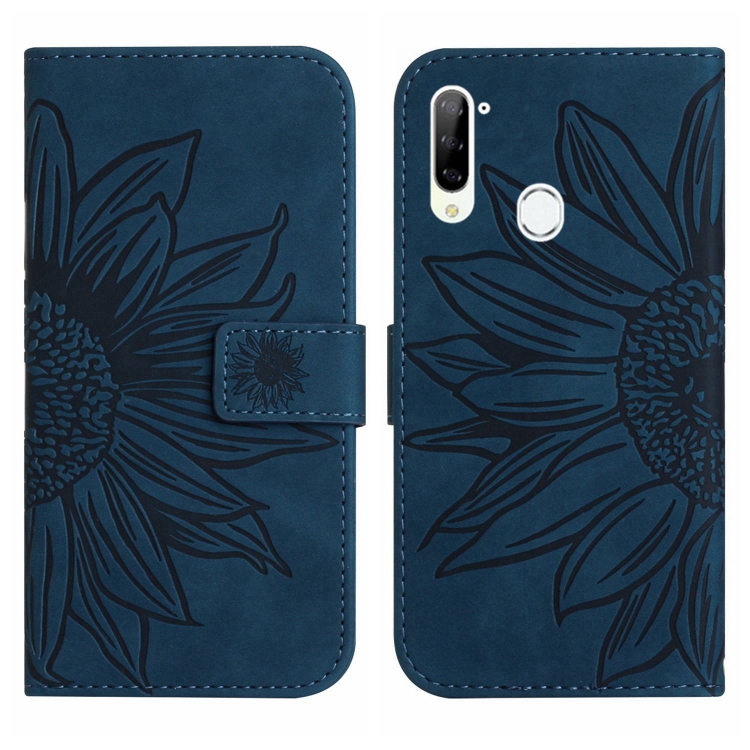Funda de Cuero con Tapa y Cordón para ZTE Libero 5G Skin Feel Sun Flower (Azul Tinta)