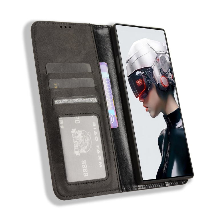 Funda para ZTE Nubia Red Magic 9 Pro de Cuero con Textura Retro y Hebilla Magnética (Negro)