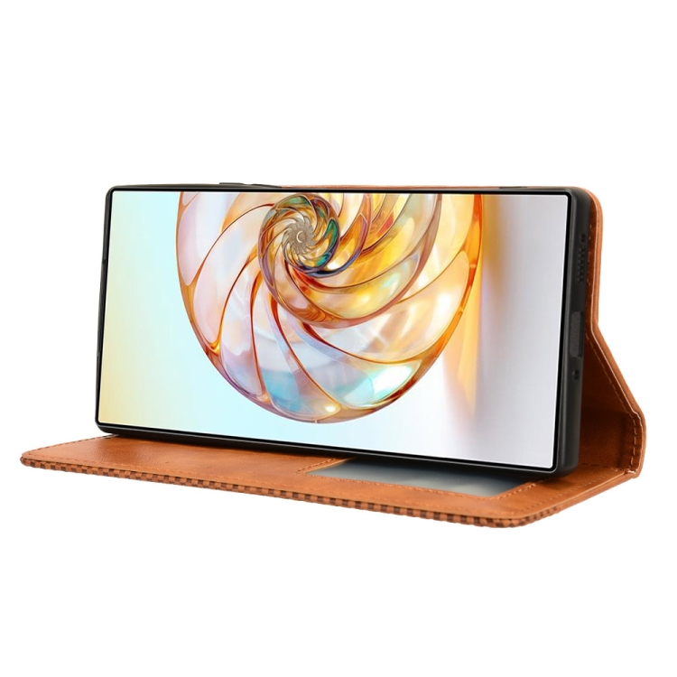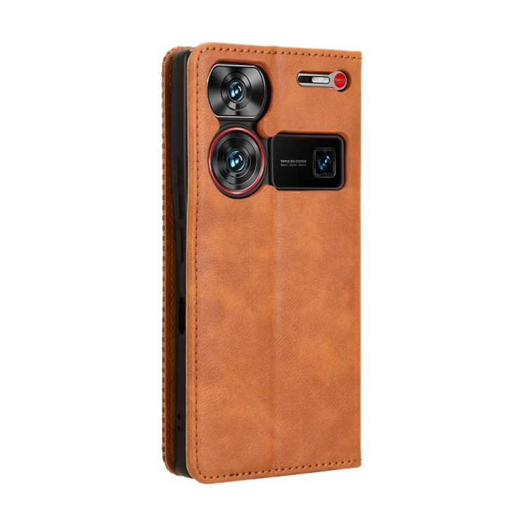 Funda para Teléfono ZTE Nubia Z60 Cuero Textura Retro Hebilla Magnética (Marrón)