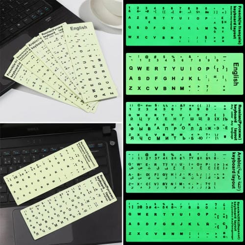 • 1x Juego de 3 Pegatinas de Teclado Luminoso para Escritorio y Computadora Portátil (Árabe Inglés)
