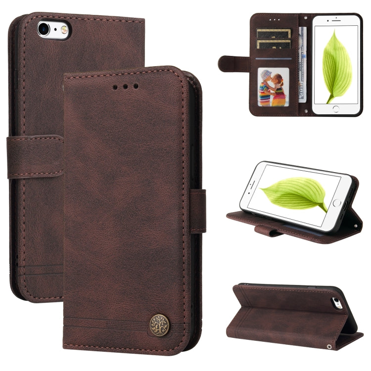 Funda de cuero Fee Life Tree para iPhone 6 / 6S con botón metálico, soporte, ranura para tarjeta, billetera, marco de fotos y correa (Brown)