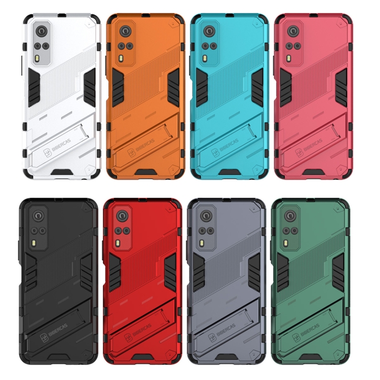 Punk Armor 2 En 1 PC + Estuche a Prueba de Golpes de TPU con Soporte Invisible para Vivo Y51 (Versión India 2020) (Naranja)