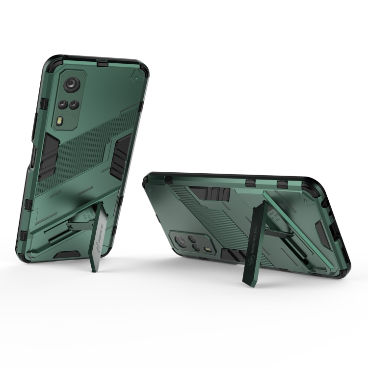 Punk Armor 2 En 1 PC + Estuche a Prueba de Golpes de TPU con Soporte Invisible para Vivo Y51 (Versión India 2020) (Verde)