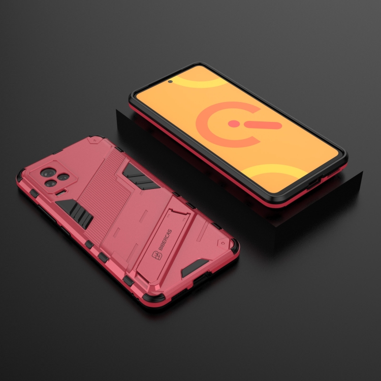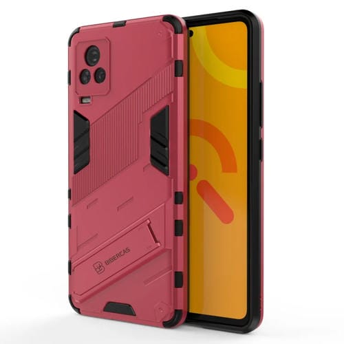 Punk Armor 2 En 1 PC + TPU Funda a Prueba de Golpes con Titular Invisible para Vivo Iqoo 7 (Rose Rojo)