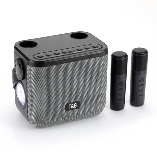 Altavoz Bluetooth T&G Tg545Dk Ktv con Micrófono Dual de Mano para el Hogar con Linterna (Gris)
