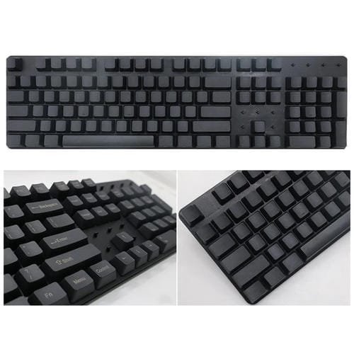 - Grabado láser con caracteres Frontales claros y permanentes; 108 teclas con altura OEM y configuración EE. UU.; tratamiento esmerilado antidesgaste e impermeable; incluye teclas multimedia y de acceso directo; peso aproximado 0.23 kg