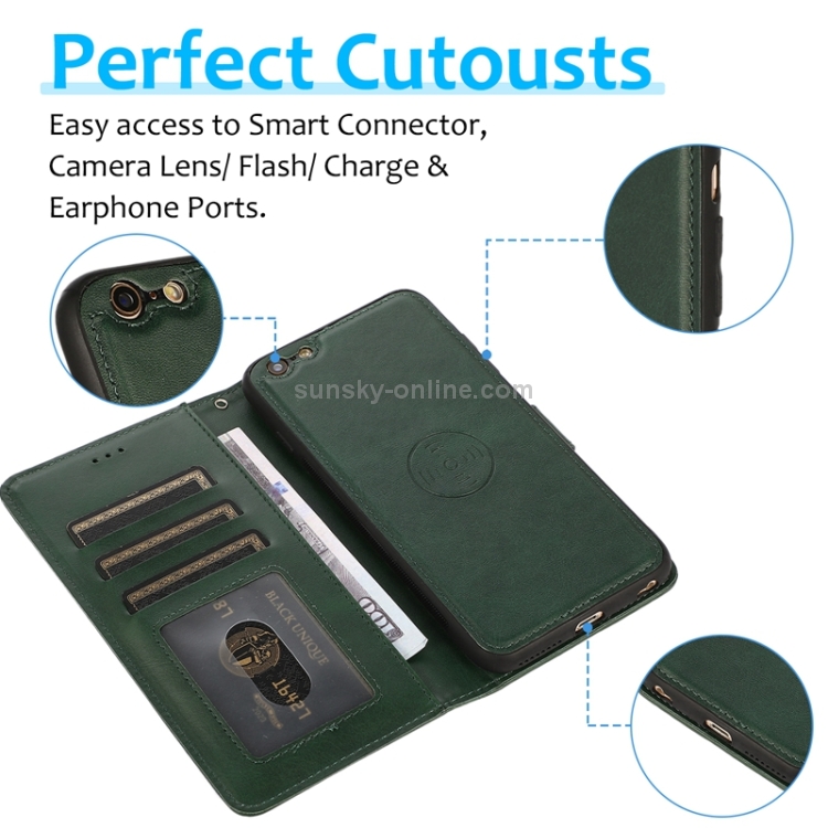 Funda Cuero iPhone 6S Plus 6 Plus 2 En 1 Cubierta Magnética Flip Horizontal (Green)