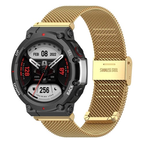 Correa de Reloj para Huami Amazfit T-Rex 2 Snap-Fit Malla de Acero Inoxidable (Dorado)