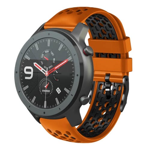 Correa de Reloj para Amazfit Stratos 22mm Silicona Transpirable Dos Colores (Negro + Naranja)