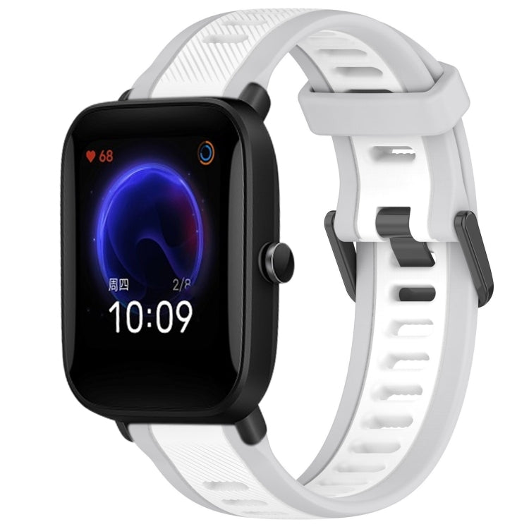 Correa de Reloj Silicona Texturizada Bicolor 20mm para Amazfit Pop (Blanco + Gris)