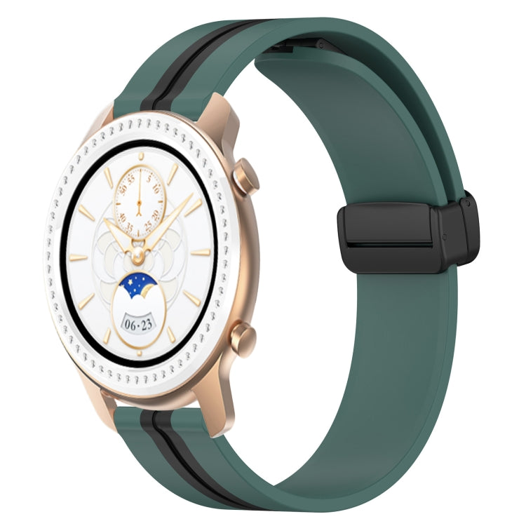Correa de Reloj Amazfit GTR 42mm 20mm Silicona con Cierre Magnético Plegable (Verde Oliva + Negro)