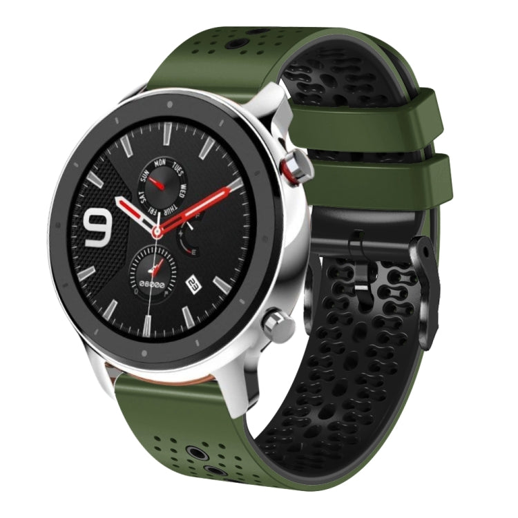 Correa de Reloj para Amazfit GTR 2 22mm Silicona Bicolor Perforada (Verde Militar + Negro)