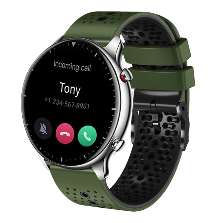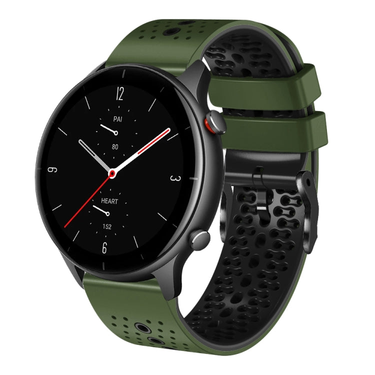 Correa de Reloj Amazfit GTR 2E 22mm Silicona Perforada Dos Colores (Verde Militar + Negro)
