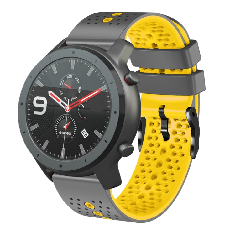 Correa de Reloj para Amazfit GTR 47mm 22mm Silicona Bicolor Perforada (Gris + Amarillo)