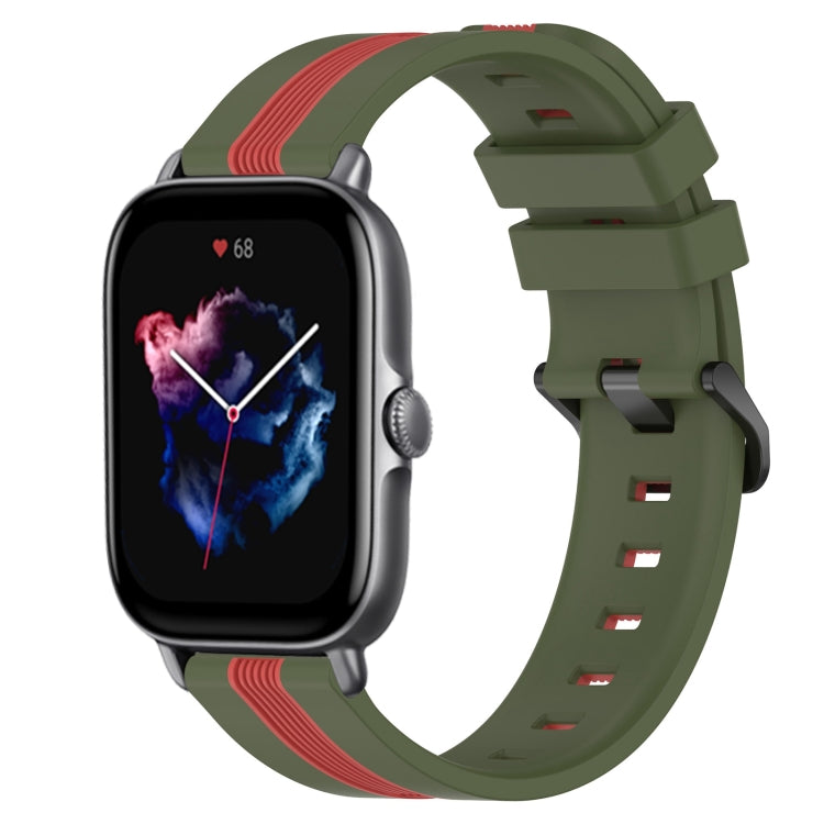Correa de Silicona para Amazfit GTS 3 20mm Dos Colores Vertical (Verde Militar + Rojo)